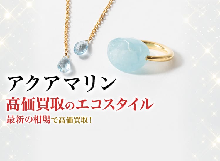 化学組成 Be3Al2Si6O18 誕生石 3月 モース硬度 7 主な産地 ブラジル、ナイジェリア、モザンビーク、ザンビア 屈折率 1.577~1.583 鉱物種 ベリル 3月の誕生石として知られるアクアマリンはエメラルドと同じくベリルという鉱物です。語源はラテン語でアクア(水)とマリーン(海)からきています。エメラルドとは異なりセミプレシャスストーンですが、本当に高品質なアクアマリンはクオリティーの低いエメラルドよりも貴重です。それなりに高品質なアクアマリンでもリーズナブルに手に入るため、ジュエリーとして多く流通しています。最も有名な産地はブラジルで色は淡いのですが大粒のアクアマリンが産出されます。近年は、ナイジェリアやモザンビークなどの新しい産地からも高品質な産出があります。ビューティーグレード、トーンと、共に高ければ高い程美しく見えます。グレーを感じると一気に価値が下がってしまうので注意が必要です。大きな原石の産出も多いので5ct以上の大粒の物でも楽しめるのは魅力的です。 エコスタイルではアクアマリンの買取にも力をいれております。ジュエリーとしての汎用性も高く、ブランドジュエリーでも頻繁に使われる宝石です。高品質な個体は石だけにもお値段を付けられますし、アクセサリークオリティでも出来る限りジュエリーとして評価してお値段をお付けしたいと思います。使っていないアクアマリンのジュエリーの買取はエコスタイルにお任せください。