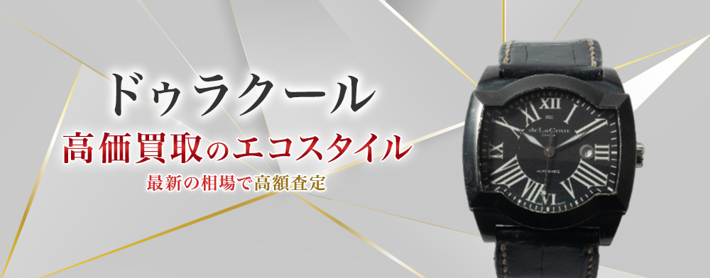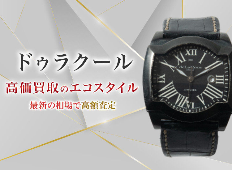 ドゥラクールは2002年にスイスのジュネーブで設立された比較的新しい時計ブランドです。社名のドゥラクールは、ブランドのオーナーで時計のデザイナーでもあるピエール・クックジャンの妻、グラッツィエラ・ドゥラクール伯爵夫人に由来しているものです。 トレンドよりも個性を重視するという考え方のもと、美しいアールラインを有するトノー形のケースに、2つのクロノグラフを搭載した「ビクロノ」や、価格が1億円以上する世界初のダブルミニッツリピーター機能搭載の「ドゥラクールビレベティション」といった、まさに芸術品といった個性的な作品を世に送りだし、世界の時計愛好家たちの注目を集めています。 その言葉自体が賞を受賞した同社のキャッチフレーズ「明日から(Since Tomorrow)」は、ブランドの独創力への姿勢をあらわしています。 マドリードには同社の創造的工程の要となる「シンクタンク」があり、そこで社内チームが研究や開発を行い、時計ケース、ムーブメントのサイズ、歯車の1つまで、ほぼ独自なオリジナルな規格のものをデザインしています。最高品質を確保するために、部品のすべてはスイスから調達しています。時計自体の組み立ては、数多くの熟練職人達の手でスイスの工房で行われ、使用されるダイヤモンド等の貴石もマドリードで厳格な審査のうえで選定した、最高品質の石を使っています。 ただいま当店では、常に、新しい芸術作品をつくりだすために挑戦を続けるドゥラクールの買取を強化しています。