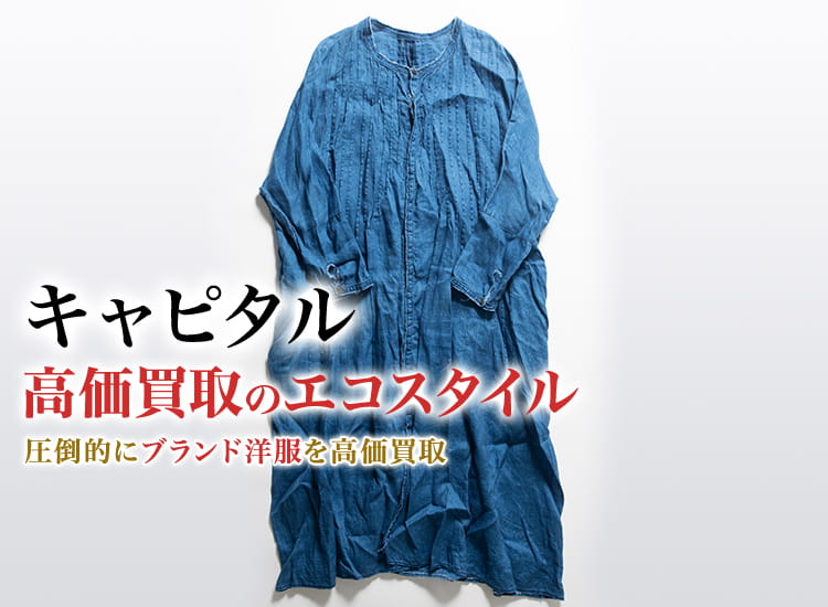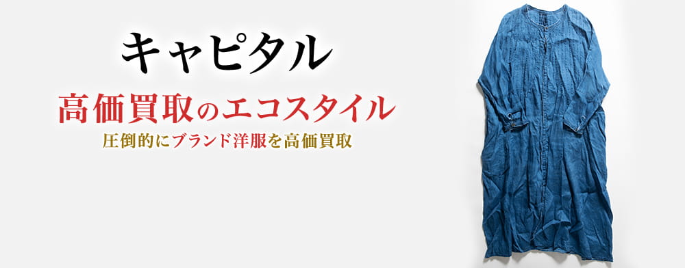 キャピタルは1995年に創業された日本のファッションブランドです。デニムで世界的に有名な岡山県倉敷市にあるブランドで、キャピタルをスタートさせる前はヒステリックグラマーなどのOEMも手掛けていた事でも大変有名なブランドです。定番である熟練された職人の手がけるデニムが人気があり有名ですが、その他のアイテムも幅広く、デニムにこだわりのある男女に人気のあるブランドです。エコスタイルではキャピタルのアイテムを強化買取しています。中でも人気の高い定番であるデニムパンツは加工デニムはもちろん、サルエル、ピエロパンツ、ぺインタータイプなど、形や色、加工を問わず強化買取中!その他、ライダースやコートなどのアウター類、デニムシャツやカーディガンなども人気が高く、こちらもぜひ買取させていただきたいアイテムです!もちろんその他洋服や、シューズ、バッグ、アクセサリーなどの小物類まで、キャピタルのアイテムでしたら大歓迎!何でも喜んで買取させていただきます!ぜひキャピタルのアイテムはエコスタイルに買取させてくださいませ。エコスタイルでは夏物冬物シーズンを問わず買取をしていますので、お客様のお好きな時にキャピタルのアイテムをお売りいただけます!着るご予定のないキャピタルのアイテムがありましたらぜひエコスタイルにお任せくださいませ。