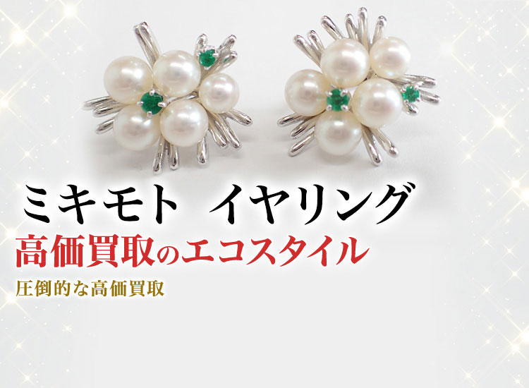 エコスタイルでは、ミキモトのピアスの買取を強化しております。デザインやパールのサイズは問いませんので、もう使用していないジュエリーがございましたらお任せください。中でもパールが5㎜や7㎜のサイズは人気が高いですので金額をお出しすることが可能です。