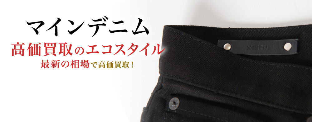エコスタイルではマインデニムを買取しております。注目度の高さから、中古市場でお探しの方も多く、特に新しいお品物や、コラボアイテムは買取金額が高くなります。もしお使いになっていないお品物がございましたら、ぜひ一度エコスタイルにご相談くださいませ。