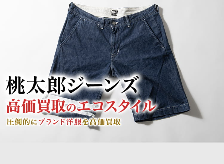 桃太郎ジーンズはジャパニーズジーンズ発祥の地、岡山県倉敷市の児島地区で作られている純国産ブランドのジーンズです。 定番レーベルは銅丹、出陣、ビンテージの3種類です。それぞれの特徴として、まず銅丹は、ジーンズ内側に本藍染めの布地が使用され、見えないところまでお洒落を追求しています。バックポケットには桃をイメージした2本のステッチが入っています。出陣は、何といってもバックポケットの2本のペイントが印象的で、これは桃太郎が鬼退治に出陣するときのノボリ旗をイメージしています。また、「2本」と「日本」をかけてもいます。ビンテージは、名前のとおりビンテージの風合いを出すため、敢えてねじれ防止加工と防縮加工されていないデニム生地を使っています。 こだわりは、染色と色落ちにも見られます。インディゴのみで世界一濃く染めた特濃インディゴは、穿きこむと色落ちの濃淡が強く出てきます。国産ジーンズ黎明期の色合いを再現したオールドブルーは、経年で美しいブルーに変化していきます。藍染の技法を取り入れたジャパンブルーは、緑がかったブルーへ変色していきます。 丁寧な縫製で丈夫な仕上がりと、日本ならではの繊細なこだわりが随所にちりばめられた桃太郎ジーンズは海外でも高く評価されています。エコスタイルでも力を入れて買取っているブランドです。桃太郎ジーンズの買取ならエコスタイルまで。