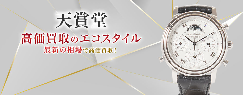 エコスタイルでは天賞堂のアイテムを買取しております。オリジナルウォッチやジュエリーなど、お使いになっていないものがございましたらぜひエコスタイルにお持ちください。箱や、保証書などの無いものでも買取しておりますので、お気軽にご相談くださいませ。