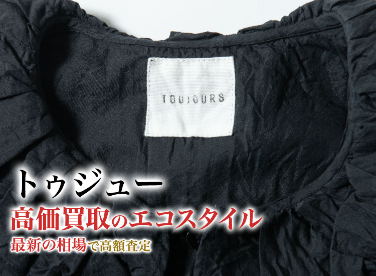 エコスタイルでは、トゥジューの買取を強化しております。洋服はもちろん、ストールやバッグなどあらゆるアイテムを取り扱っております。飽きがこないデザインが特徴でユーズドでの人気も高いブランドですので、クローゼットに眠っているお品物がございましたら、ぜひエコスタイルへご相談下さい。