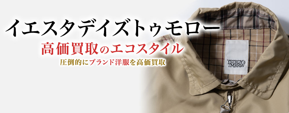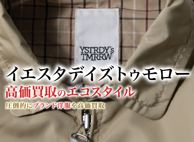 エコスタイルではイエスタデイズトゥモローの買取を行っております。手番のダウンジャケットやパーカー、コラボアイテムまで取り扱っておりますので、お使いでないお品物がございましたらお気軽にご相談くださいませ。