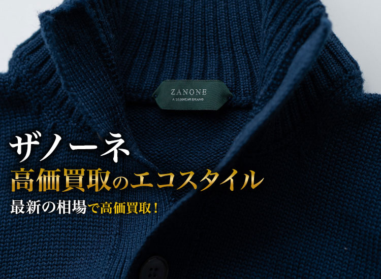 また、ブランドの合言葉が二つあり、それを体現した商品が沢山あります。 ブランドの買い取りにおいても、ザノーネの製品は男性などをはじめとして人気商品ですので高額査定も可能です。特に秋冬の季節にはスタンドカラーニットや、クルーネックニットと言った商品は需要が高まります。