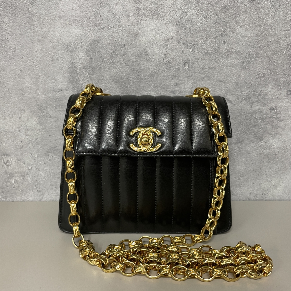 マドモアゼルは、ココ・シャネルをオマージュしたモデルです。生涯独身を貫いたため、フランス語で未婚女性を表す「マドモアゼル」と名付けられました。縦のステッチが入った、クラシックで上品なデザインが特徴で、ヴィンテージ市場で特に人気があります。コココクーン