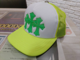 今回お買取しましたお品物は、セメタリークロスパッチのトラッカーキャップです。ネオンカラーで、ポップなデザインが最高にかっこいいですね。トップ部分にはシルバーのクロスボールが採用されており、ブランドらしさも全開です。アクセサリー類はもちろんのこと、キャップなども含め品薄のため中古市場での価値も上がっております。