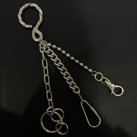 今回のお品物は、重厚感のあるシルバー925素材を使用した存在感抜群のキーリングです。ブランドらしい無骨さと遊び心を感じさせるデザインで、異なるチェーンやパーツの組み合わせが特徴的です。フックやカラビナ仕様で実用性も高く、ウォレットチェーン感覚でコーディネートのアクセントとしても活躍するアイテムです。小傷はあるものの全体的にコンディションは良好で、綺麗なお品物でしたのでしっかりと評価しお買取いたしました。