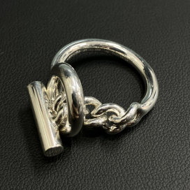 今回ご紹介するのは、人気のシルバーリングであるクロワゼットリングです。シェーヌダンクルを新しい解釈でデザインしたアイテムで、シンプルながらに存在感のあるデザインです。ミディアムとラージのサイズ展開があり、ファッションスタイルに合わせて使い分けられることも魅力です。非常に大事にお使いになられていたお品物だったため、特筆すべきダメージはなく美品と判断いたしました。注目度も高いエルメスのシルバーアクセサリーでしたので、自信のある金額をご提示いたしました。