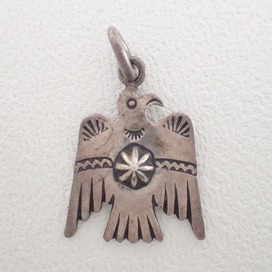 今回のお品物はサンダーバードのペンダントトップです。SV925のアイテムで、プレートの中心に同ブランドの特徴の一つと言えるシェルや波などがデザインされたペンダントトップです。細かな彫り込みや造形に技術力の高さを感じる同ブランドらしいアイテムです。