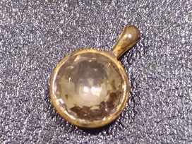 買取させていただきましたマリーエレーヌのジュエリーは、K22 スモーキークォーツ ビンディ ペンダントトップです。スモーキークォーツを使ったビンディでシックなカラーながらも特有の輝きを放っています。ビンディはクラシックなデザインのペンダントトップで、どんなファッションにも合うため、様々なシーンで使えそうですね。