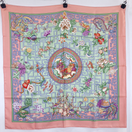 今回のお品物は、02年製のトゥーランドット ナツノヒダカのカレ90です。オペラの「トゥーランドット」を題材にしたチャイニーズな絵柄が特徴のカレです。鮮やかなデザインが目を引きますよね。カレはスカーフとしてだけでなく、絵画のようにインテリアとして使用される方も多く、デザインによって相場も異なります。今回のお品物は状態もよく、デザインも人気が高いお品物でしたので、ご満足いただける金額をご提示することができました。