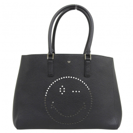 ブラック スマイリーウィンク レザ ートートバッグ