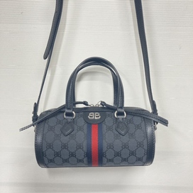 こちらのバッグですが、非常に話題になったコラボ作品です。ケリングというラグジュアリーブランドのグループに所属しているグループ同士のコラボということもあり実現しているのではないでしょうか。ハッキングコレクションとして展開があり、ご紹介しておりますバッグも、GG柄ではなく、BB柄のジャガードとなっており、とてもユニークな作品です。