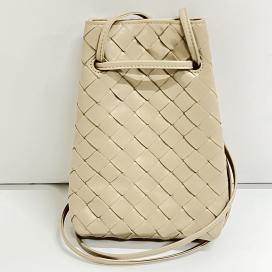 カーフレザー イントレチャート 巾着型 フォンポーチ