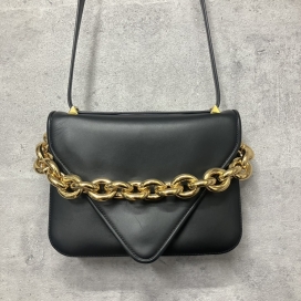 こちらのバッグですが、三角のシルエットのフラップがスタイリッシュなバッグです。上質なしっとりとしたレザーに、ゴールドのチェーン金具がアクセントになっています。2021年から2022年頃に展開があり、支持されていました。主張しないクワイエットラグジュアリースタイルが話題となっており、マウントシリーズをお探しの方も多いようです。