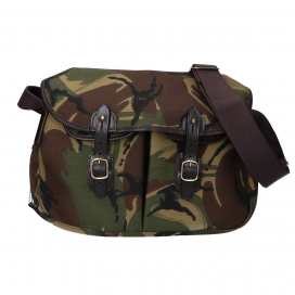 お品物は、カモフラのARIELTROUT COMOというショルダーバッグです。レザーはブライドルレザー。真鍮がバックルやリングなどに用いられているため、高級感があります。キャンバス地は防水です。そのため、様々なアウトドアシーンで活躍します。