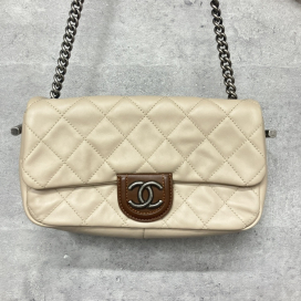 今回のお品物は、6番台のバイカラーのマトラッセ、チェーンショルダーバッグです。ベージュのラムスキンにブラウンのココマーク、そしてヴィンテージ調のシルバー金具という組み合わせは、現行品とは異なった気品のお品物です。この頃の年代のきれいなお品物はコレクターの中でも重宝されます。市場での流通も一般的なマトラッセのバッグよりも少ないため、希少性があります。