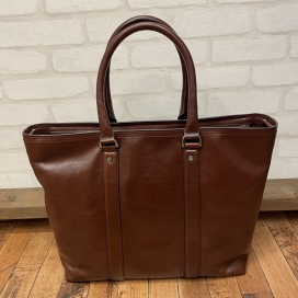 今回お買取させていただいたお品物は、ココマイスターのトートバッグです。こちらは、マットーネと呼ばれるレザーを贅沢に使用した、横幅35.5cm×縦幅34cmの大型のトートバッグです。ビジネスユースを想定したサイズ感のため、シンプルで無駄のないデザインが採用されており、スーツに合わせるのが格好いいバッグです。イタリアで1000年以上の歴史を持つバケッタ製法をベースにしたレザーは、温かみがあり経年変化も楽しむことができます。