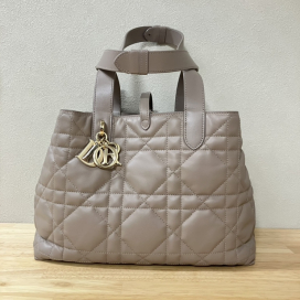 象徴的な「カナージュ」モチーフを拡大した「マクロカナージュ」ステッチをカーフスキンに施し、伝統とモダンが融合した表情を見せています。最大の特徴は、シルエットを変化させられる革新的な構造です。サイドにあしらわれた「CDロック」クラスプを留めると、バッグのフォルムが引き締まり、異なる印象を楽しめます。また、ゴールドの「D.I.O.R.」チャームが揺れ動き、エレガントなアクセントを添えています。ハンドルは長さ調節が可能で、ハンドバッグとしてだけでなく、肩掛けもできる実用性も魅力です。歴史あるカナージュを継承しつつも、現代のライフスタイルに合わせた自由度の高いデザインが、幅広い世代から支持されています。内側には取り外し可能なポーチも付属し、使い勝手の良さも考慮された、まさに「トゥジュール(いつも、毎日)」使いたくなるバッグです。