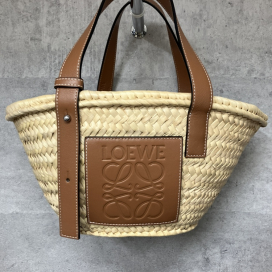 今回のお品物は、パームリーフ&カーフのスモールバスケットバッグです。職人技と、自然素材の美しさを融合した伝統的なバスケットバッグです。モロッコで栽培、収穫、天日干しされたヤシの葉などの天然の植物繊維を手作業で編み上げているのが特徴です。そのため、一つとして全く同じ色合いや形が存在せず、唯一無二の個性を持つアイテムです。素材やデザインから夏のロエベのアイコンバッグとして非常に高い人気を誇っています。