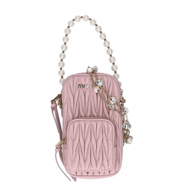 ご紹介するこちらのバッグは、立体感のある上質なレザーを贅沢に使用したアイテムです。ミュウミュウらしさが詰まったアイテムで、可愛らしさと上品さを兼ね備えた万能バッグです。ミニサイズでありながら、収納力があり、さらに2WAY仕様のため、普段使いから特別なシーンまで幅広くお使いいただけます。