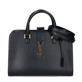 今回のお品物はアイコニックなハンドバッグ「モノグラム・カバス」のスモールサイズです。洗練されたスクエアフォルムと、フロントに鎮座するゴールドの「YSL」カサンドラロゴが完璧な調和を見せています。取り外し可能なショルダーストラップが付属しているため、ハンドバッグ、あるいはクロスボディなど、シーンに合わせて表情を変えられるのが最大の魅力です。