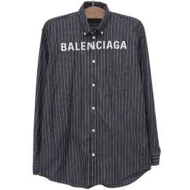 今回のお品物は、ロゴ刺繍の入ったストライプシャツです。こちらのアイテムは現在、ブランドの中でも定番デザインのひとつとなっており、中古市場でも人気の高いシャツです。シンプルなストライプデザインにバレンシアガのロゴ、さらにオーバーサイズといったトレンド感のあるアイテムのため、若い世代を中心にお求めの声が多くございます。