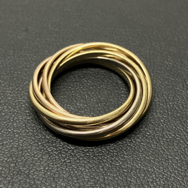 今回のお品物は、Ag750をあしらった7連のトリニティリング、B4089100です。「トリニティ」は、1924年にルイ・カルティエによって考案されました。100年以上の長い歴史を持ち、カルティエを象徴するコレクションです。3色のゴールドには「愛」「友情」「忠誠」という意味が込められており、この3つが絡まり合う事で、これらの3つの意味が永遠に続くことを表しています。通常、3連のトリニティリングをお持ち込みいただけることが多いですが、7連のトリニティリングは比較的珍しいお品物でしたので、その点も高く評価いたしました。