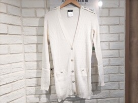 今回買取させていただきましたシャネルの洋服は、P52 ココマークボタン ミドルニットカーディガンです。上質な素材で丁寧に織られたニットと色違いのココマークボタンが特徴的ですね。さらっと羽織れるデザインになっているので、春先でも活躍すること間違いなしです。