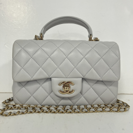 お品物は、グレーのラムスキンのトップハンドルマトラッセです。グレーは、幅広いコーディネートやスタイルに合わせやすいカラーですね。アイコニックなマトラッセバッグは一度は手にしたいと思う方も多いのではないでしょうか。