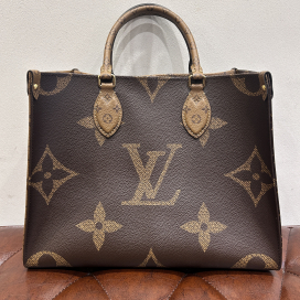 今回のお品物は、今やルイヴィトンの定番バッグとなったオンザゴーです。オンザゴーの中でも真ん中のサイズであるため、男女問わず愛用されている方が多いお品物です。