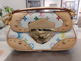 今回お買取しましたお品物は、モノグラムマルチカラーラインのマリリンです。2007年製造のバッグで、カラフルなモノグラムが特徴的なバッグですね。こちらはすでに廃番となっているお品物ですが、ここ1~2年でリバイバルしており、Y2Kブームに乗った新たなファッションアイコンとして注目を集めていますね。ちょうど肩掛けできるようなコロンとしたサイズ感も現在のトレンドにバッチリ合っています。