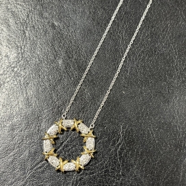 お買取したペンダントネックレスは、人気が高い「ジャンシュランバージュ」シリーズのお品物で、愛のシンボルの「X」がK18イエローゴールドで8個デザインされています。また、純度が高いプラチナ950に16Pのラウンドブリリアントカットダイヤモンドがセッティングされていて非常にエレガントな雰囲気を感じることが出来ます。