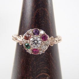 アガットのこの手のカラーストーンを使ったジュエリーはハイクオリティのお品物が多いです。定価も200,000円を超える価格帯になります。エメラルド、ダイヤモンド、ガーネット、アメジストといった宝石が使われています。サイズは小さいですが品質は高い宝石が散りばめられています。画像からもお分かり頂けると思いますが、サイズは小さいですが中石のダイヤモンドのクオリティも高いですね。なかなか2次流通に出回る事が少ないお品物でしたので頑張って50,000円でお買取りさせていただきました。