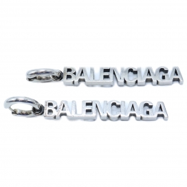 今回のお品物は、TYPO MIRROR ロゴのピアスです。今回のお品物最大の魅力は、一目見ただけでバレンシアガとわかる存在感の大きいデザインです。ミラー加工されているためキラキラと耳元で揺れるデザインがとても可愛らしいアイテムです。、最近では大胆なロゴや、身につける人の個性を強く主張するアクセサリーがトレンドとなっているため、トレンド感のあるアイテムともいえます。