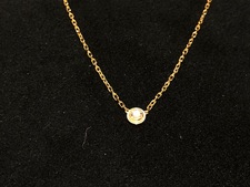 こちらのネックレスですが、シンプルな1ポイントのダイヤモンドを使用したネックレスです。ダイヤモンドをセッティングしているペンダントトップはブランドの頭文字であるCを象ったデザインになっております。また、ネックレスの留め具の部分にもブランドを象徴する金具が使われており、シンプルですが、ブランドらしさを感じられるモデルです。普遍的なアイテムということもあり、リユース市場でお探しの方も多いのではないでしょうか。