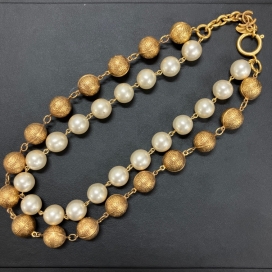 こちらのジュエリーですが、パールとゴールドのボールデザインが輝くネックレスです。アイコンのデザインである、ココマークのチャームがついており、よりインパクトのあるデザインです。パールとゴールドの組み合わせにより、ラグジュアリーさを感じられるアイテムではないでしょうか。