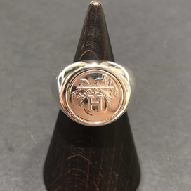 今回買取したリングは、エルメスのブランドロゴ=エクスリブリスをモチーフにしたカレッジリングです。とてもシンプルですがアイコニックで気になるリングです。素材は925シルバーで作られています。