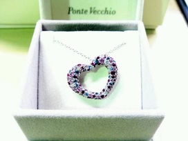 エコスタイル横浜店ではブランドアクセサリー、ジュエリーの買取にも力を入れております。こちらは先日お買取させていただいたポンテヴェキオのK18WGのカラーストーン付きハートネックレスです。