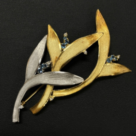 こちらのアイテムは、ジュエリー作家の田村俊一氏が制作したブローチです。K18とPt900の素材をベースに、ダイヤやパライバトルマリンなどの宝石を使用したアイテムです。ボタニカルな雰囲気とシンプルなデザインのため、どの服装にも馴染むアイテムではないでしょうか。