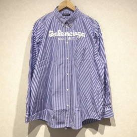 こんにちは、エコスタイル浜松入野店です。お客様からバレンシアガのブルーのロゴ刺繍ストライプシャツを買取ましたので、ご紹介いたします。
