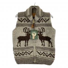 トナカイ柄 ジップアップ カウチンニット ジャケット