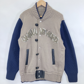 今回のお品物は、サカイとアーティスト・エリックヘイズのコラボレーションによるニットジャケットです。フロントには立体感のあるエンブロイダリーロゴが大胆に施され、唯一無二の存在感を放っています。ブラウン×ネイビーのカラーリングは落ち着きがありつつも、切り替えデザインによってしっかり個性が光る一着です。ニット特有の柔らかさと程よい厚みがあり、スタジアムジャケットのような雰囲気をニット素材で表現した独創的なアイテムです。美品状態でのご依頼でしたので、素材の風合いやコンディションを踏まえ、ご満足いただける査定金額をご提示することができました。