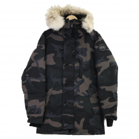 通常、カナダグースのワッペンは赤色ですが、今回のモデルは黒色です。ブラックディスクは通常のラインよりも1つ上のラインで、カモフラ柄は限定的な人気デザインです。お求めの方が多く、常に人気の高いアイテムでございます。
