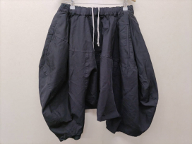 今回買取しましたお品物は、製品染めのサルエルパンツ、GA-P017です。墨のようなブラックカラーで染められており、バルーンようなシルエットがモード感が強くデザイン性の高いサルエルパンツです。意外とシンプルなトップスとも合わせやすいですが、ここはモードなアイテムと合わせておもいっきりギャルソンというブランドを楽しみたいですね。