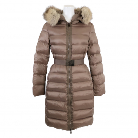 こんにちは、エコスタイル広尾店です。お客様からモンクレールのベージュでベルト付きダウンコート、TINUVIELをお買取いたしましたので、ご紹介します。