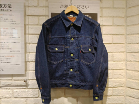 今回のお品物は、バニシングウエストセカンドデニムジャケット、507XXです。バニシングウエストより、オリジナルの14オンス・インディゴデニムを使用したデニムジャケットで、1950年頃のデザインをモチーフにしております。アウターとしてはもちろんのこと、コートの下に着てもかっこいいですね。
