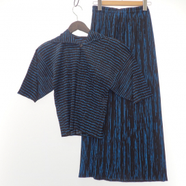 イッセイミヤケ プリーツプリーズの黒×青 総柄 シャツ&スカート セットアップの買取実績です。